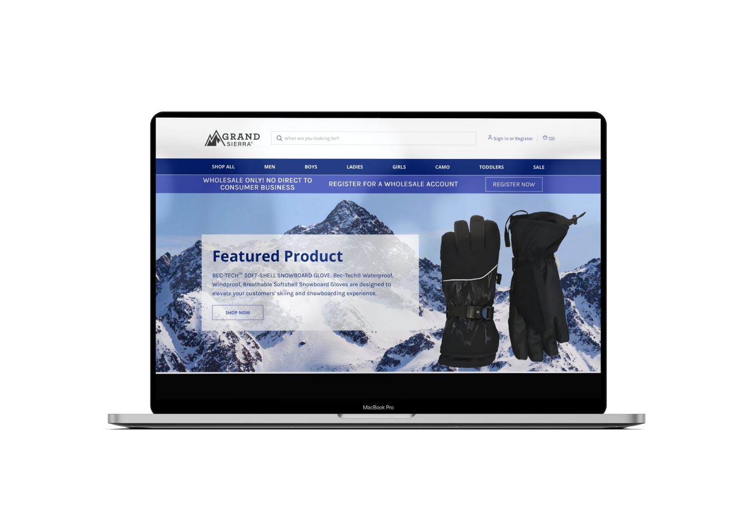 I worked on the ecommerce experience for Grand Sierra Gloves, a wholesale distributor of winter gloves, hats, and cold-weather accessories for retail buyers. My role focused on front-end design and content updates during the transition from OpenCart to a BigCommerce multi-storefront platform, improving product browsing, catalog structure, and responsive page layouts for a smoother wholesale purchasing experience