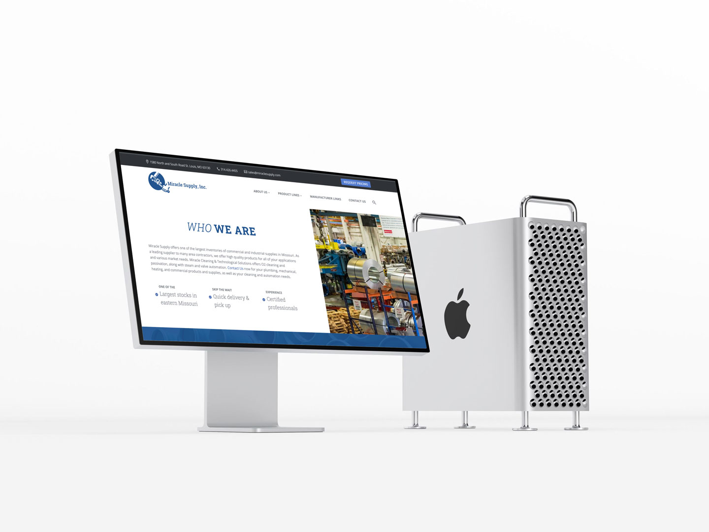 Website design and front-end development for Miracle Supply Co., featuring responsive layouts, improved navigation, and organized content for a wholesale plumbing and industrial supply distributor.