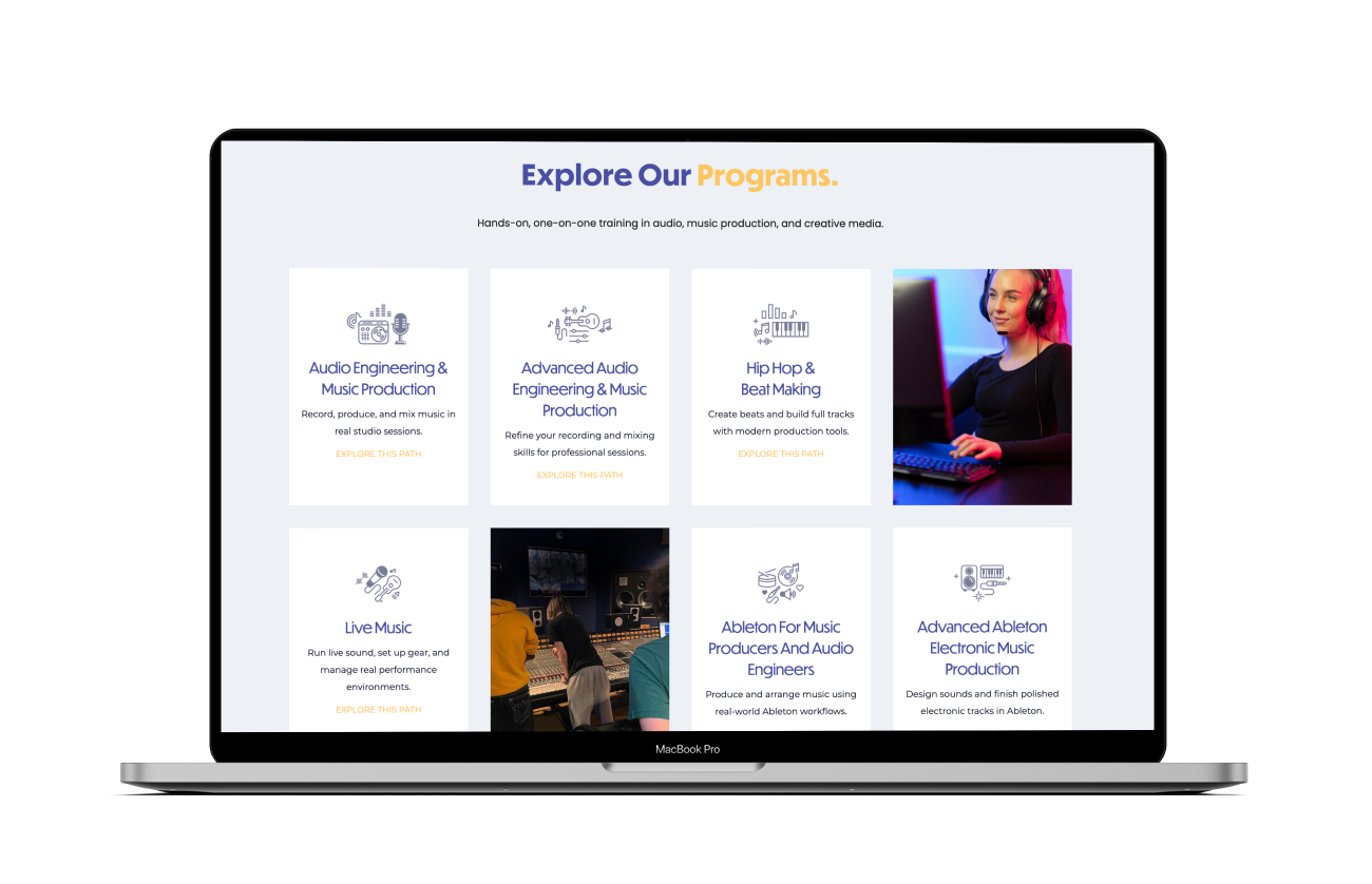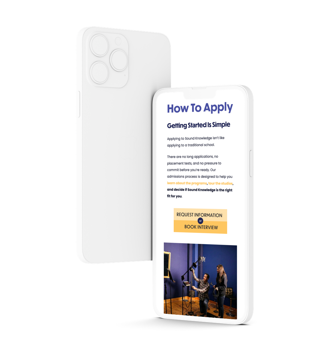 I designed the brand identity and website for Sound Knowledge, a St. Louis music production education initiative powered by Phat Buddha Productions. My work included logo design, a color and typography system, and responsive front-end layouts that present the program and its training opportunities clearly across devices. I also wrote the full website copy using an AI-assisted workflow and enhanced studio photography with generative AI to better represent the real studio environment.